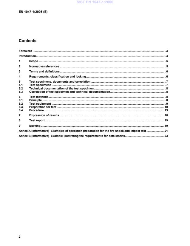 2 Normative references The following referenced documents are indispensable for the application of this document. For dated references, only the edition cited applies. For undated references, the latest edition of the referenced document (including any amendments) applies. EN 1363-1:1999, Fire resistance tests – Part 1: General requirements EN 60584-1 Thermocouples – Part 1: Reference tables (IEC 60584-1:1995) SIST EN 1047-1:2006