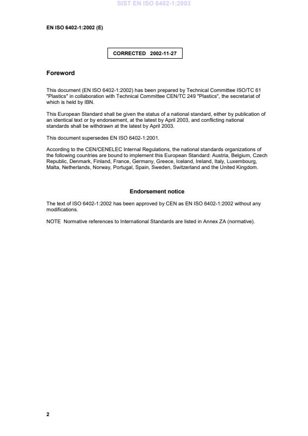ISO 6402-1 was prepared by Technical Committee ISO/TC 61, Plastics, Subcommittee SC 9, Thermoplastic