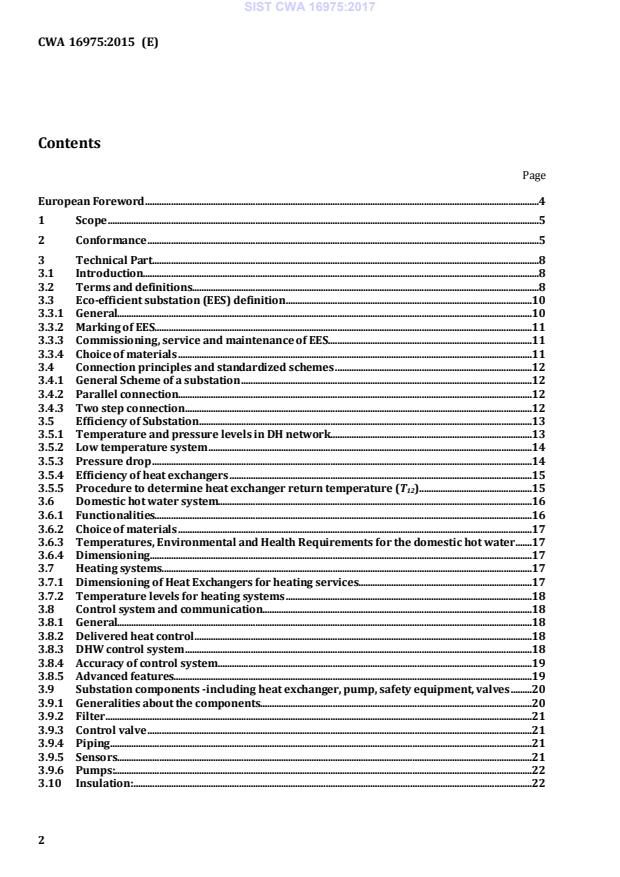 CWA 16975:2015 is a standardization document published by the European Committee for Standardization (CEN). Its full title is "Eco-efficient Substations for District Heating". This standard covers: The target is to describe what is an eco-efficient substation (EES), how this eco-efficient substation is considered, tested and certified. EES concept includes as much substation efficient design as possible, without trying to cover an exhaustive point of view. The scope of the EES is to focus on a reachable future, realistic compliance with the existing system and ways of handling substation issues in a harmonized manner across Europe. The proposed standard is compliable with the expected development in Europe in the future such as: • New buildings with less demand for energy and more demands for lower temperatures. • The connection systems should be standardized in order to make the substation replacement as easy as possible. The aim is to consider the whole life of the system, including all seasons and not only the peak load operation. The most important period to consider, is the long duration time with both heating and domestic hot water demands. EES should be certified, and marked according to certification that is given according to testing result and environmental ranking. Only EES with capacity up to 500kW per heat exchanger for heating and domestic hot water respectively, can be certified. Small substations intended for single-family houses or flats, shall not be certified. A certificate can include one specific substation or a series of substations. This document contains 3 main parts: Technical: Describes the main and optional components of the EES Environmental: Describes the various parameter and components that give the efficiency to the substation, how these are ranked and the marking procedure Testing and certification: The testing and certification procedures.