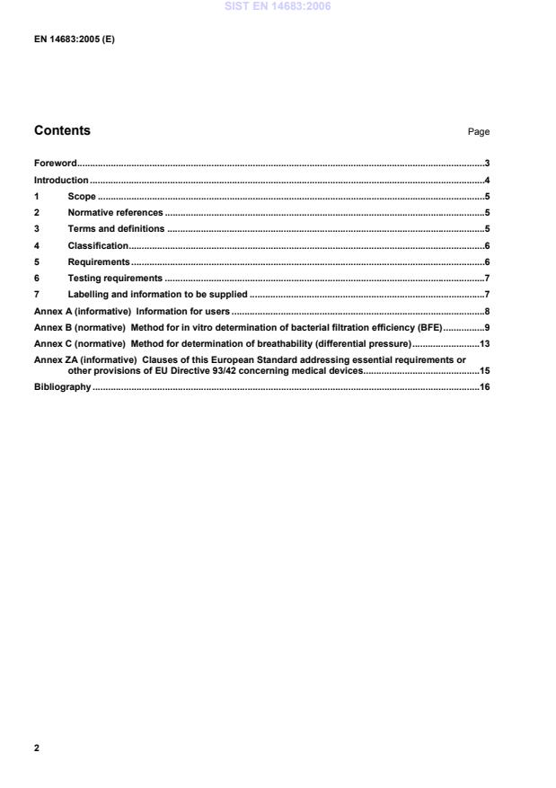EN 14683:2005 is a standard published by the European Committee for Standardization (CEN). Its full title is "Surgical masks - Requirements and test methods". This standard covers: This European Standard specifies construction and performance requirements, and test methods for surgical masks intended to limit the transmission of infective agents from staff to patients and (in certain situations vice-versa) during surgical procedures in operating theatres and other medical settings with similar requirements. This European Standard is not applicable to masks intended exclusively for the personal protection of staff. NOTE 1 Standards for masks for use as respiratory personal protective equipment are available. NOTE 2 Annex A provides information for the users of surgical masks.