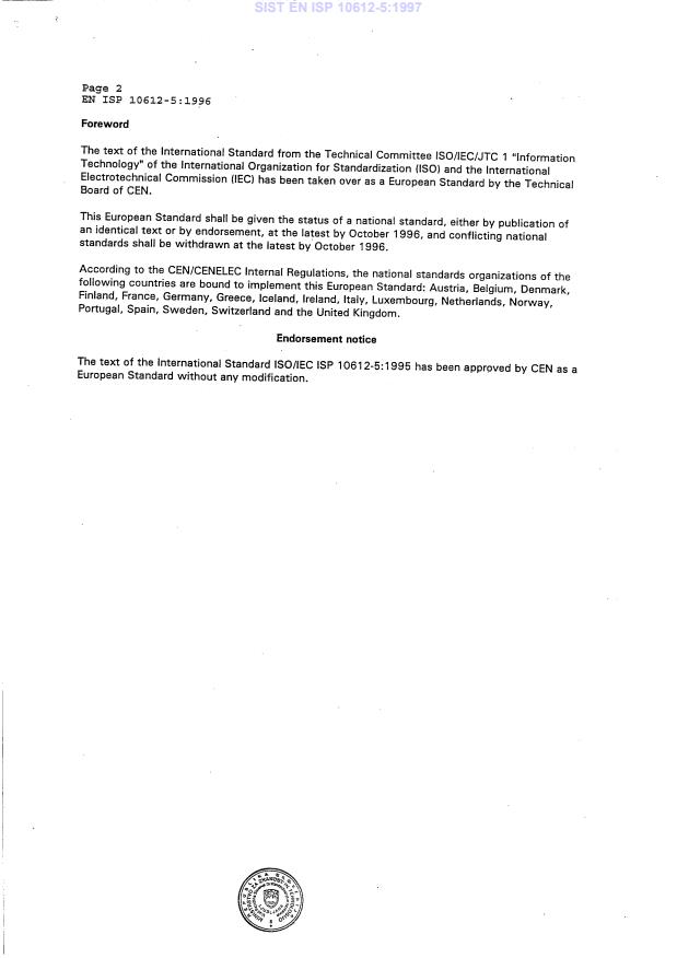 Ta slovenski standard je istoveten z: EN ISP 10612-5:1996