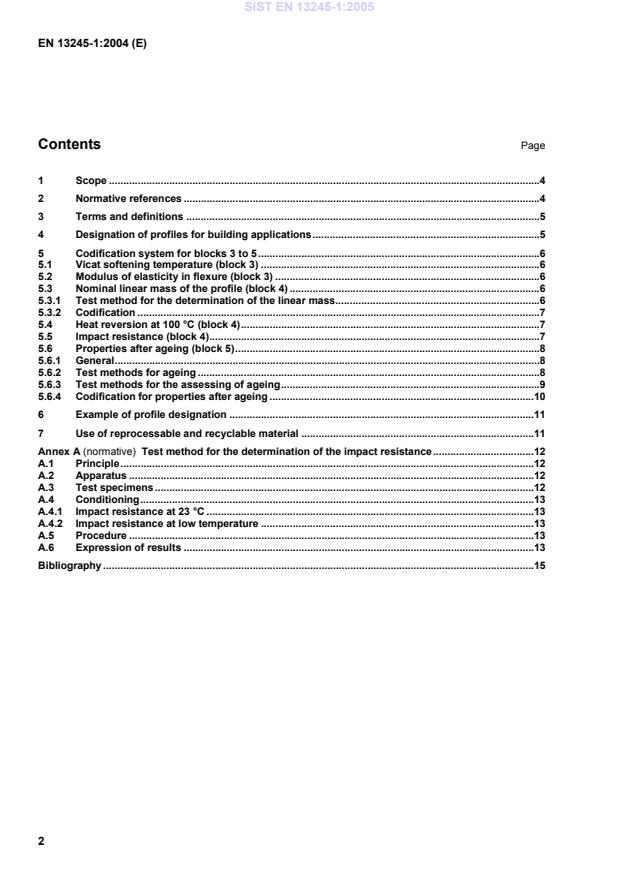 2 Normative references The following referenced documents are indispensable for the application of this document. For dated references, only the edition cited applies. For undated references, the latest edition of the referenced document (including any amendments) applies. EN 477:1995, Unplasticized polyvinylchloride (PVC-U) profiles for the fabrication of windows and doors — Determination of the resistance to impact of main profiles by falling mass. EN 479, Unplasticized polyvinylchloride (PVC-U) profiles for the fabrication of windows and doors — Determination of heat reversion. EN 513:1999, Unplasticized polyvinylchloride (PVC-U) profiles for the fabrication of windows and doors — Determination of the resistance to artificial weathering. EN ISO 178, Plastics — Determination of flexural properties (ISO 178:2001) EN ISO 306:1996, Plastics — Thermoplastics materials — Determination of Vicat softening temperature (VST) (ISO 306:1994).
