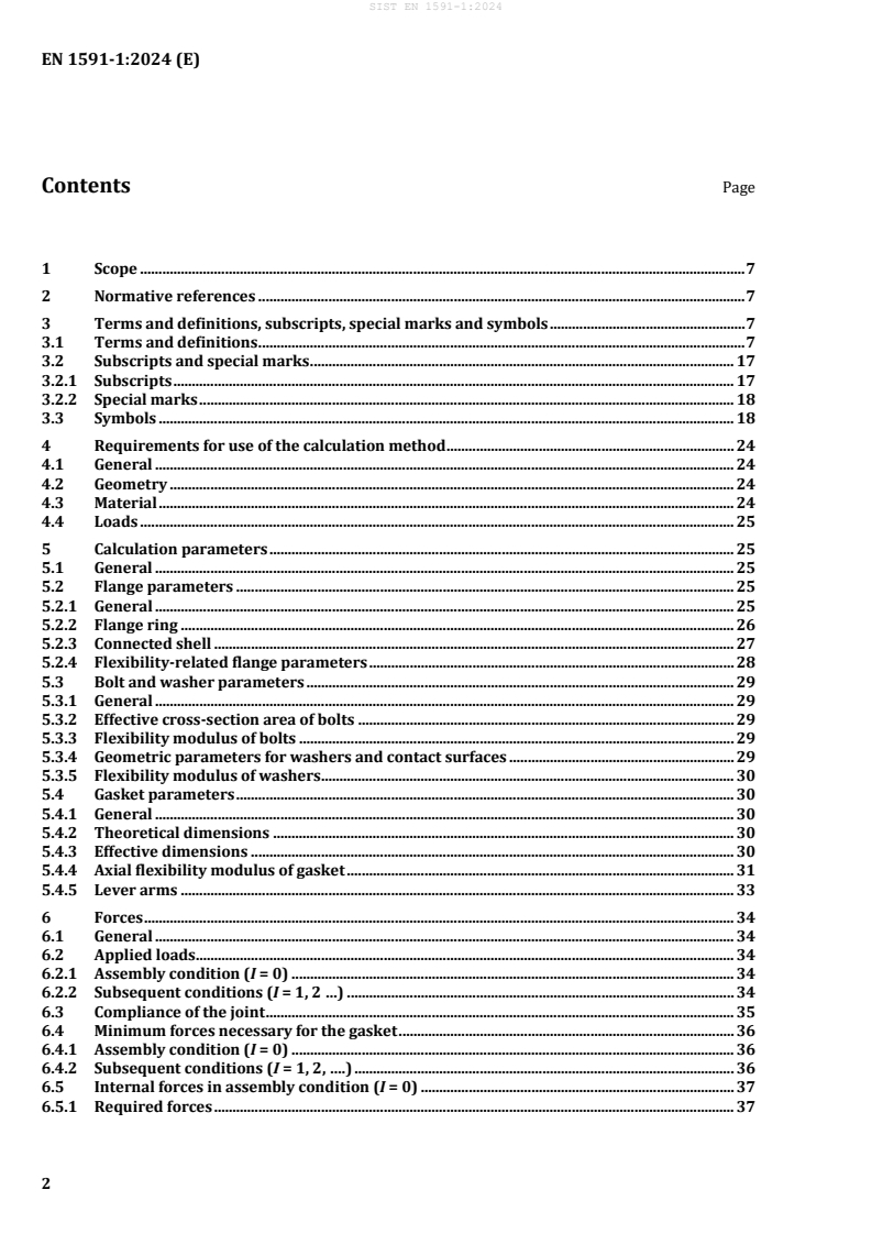 This document defines a calculation method for bolted, gasketed, circular flange joints. Its purpose is to ensure structural integrity and control of leak tightness. It uses gasket parameters based on definitions and test methods specified in EN 13555:2014. The calculation method is not applicable to joints with a metallic contact out of the sealing face or to joints whose rigidity varies appreciably across gasket width. For gaskets in incompressible materials, which permit large deformations, the results given by the calculation method can be excessively conservative (i.e. required bolting load too high, allowable pressure of the fluid too low, required flange thickness too large, etc.).