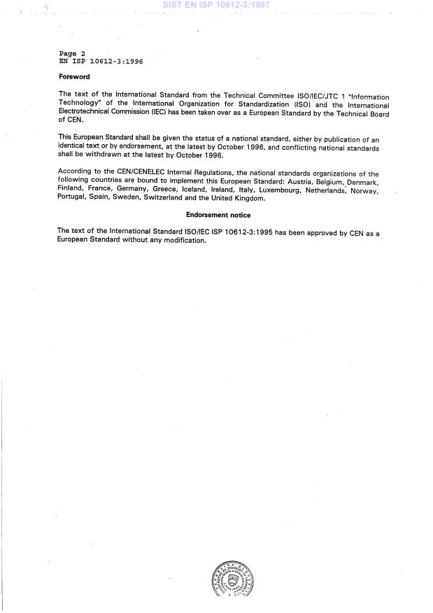 EN ISP 10612-3:1996 is classified under the following ICS (International Classification for Standards) categories: 35.100.05 - Multilayer applications. The ICS classification helps identify the subject area and facilitates finding related standards.