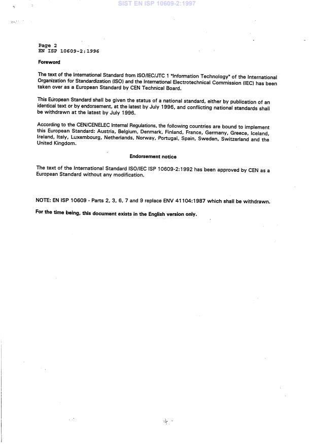 EN ISP 10609-2:1996 is classified under the following ICS (International Classification for Standards) categories: 35.100.05 - Multilayer applications. The ICS classification helps identify the subject area and facilitates finding related standards.