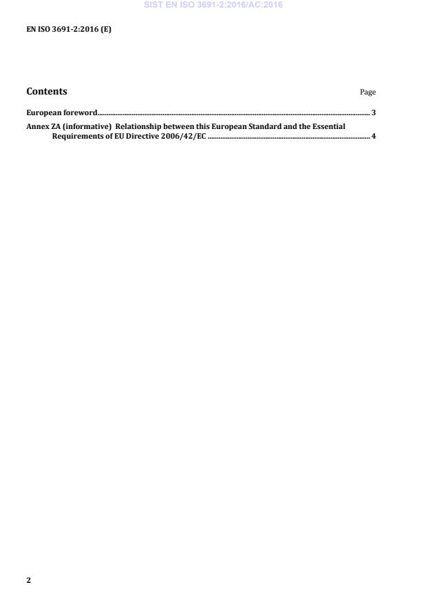 EN ISO 3691-2:2016 (E) 2 Contents Page European foreword . 3 Annex ZA (informative)
