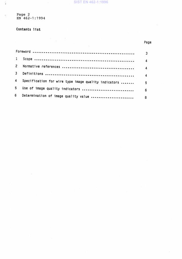EN 462-1:1994 is a standard published by the European Committee for Standardization (CEN). Its full title is "Non-destructive testing - Image quality of radiographs - Part 1: Image quality indicators (wire type) - Determination of image quality value". This standard covers: This part 1 of the standard specifies a device and a method for the determination of the image quality of radiographs. Other devices are the subject of parts 2 and 5 of the standard.