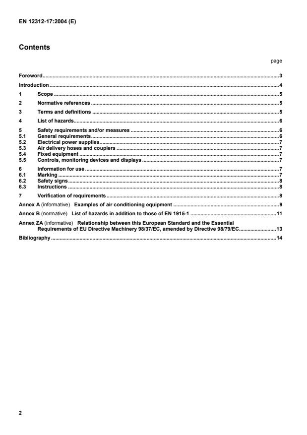 EN 12312-17:2004 is a standard published by the European Committee for Standardization (CEN). Its full title is "Aircraft ground support equipment - Specific requirements - Part 17: Air conditioning equipment". This standard covers: This document specifies the technical requirements to minimise the hazards listed in Clause 4 which can arise during the commissioning, operation and maintenance of specific air conditioning equipment for aircraft ground support, when carried out in accordance with the specifications given by the manufacturer or his authorised repre-sentative. It also takes into account some requirements recognised as essential by authorities, aircraft and ground support equipment (GSE) manufacturers as well as airlines and handling agencies. This document is not dealing with the hazards of air conditioning machinery itself, but with the equipment for the specific application of such machinery as aircraft ground support equipment. This document applies to all types of moveable air conditioning equipment with evaporators for cooling, heating and ventilating the interior of civil aircraft from outside (ground air conditioning). Examples see Annex A. It also applies to air conditioning units and accessories, e.g. hoses, couplers, mounted on moveable parts of passenger boarding bridges and/or moveable parts of fixed centralized aircraft air conditioning equipment, whether passenger boarding bridge mounted or ramp integrated. This document does not establish requirements for noise and vibration. Noise is dealt with in prEN 1915-4. This document is not dealing with hazards in respect to a standard automotive chassis and the traffic on the apron. This Part of EN 12312 is not applicable to air conditioning equipment, which is manufactured before the date of publication of this standard by CEN.
