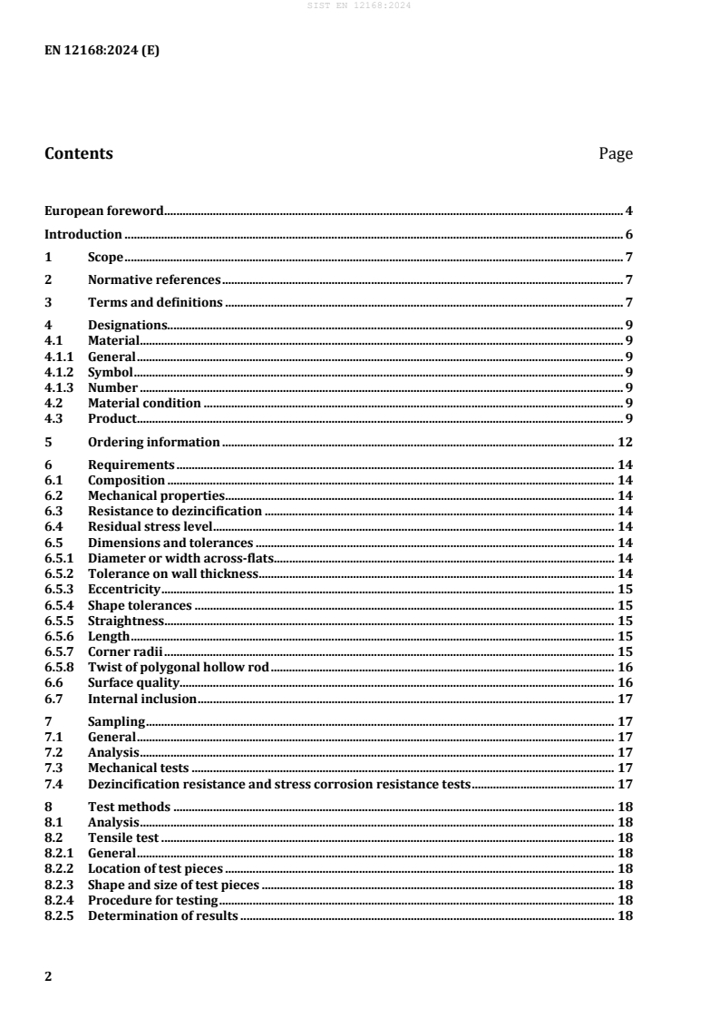 Keywords: EN 12168:2024, copper hollow rod, copper alloys, hollow rod free machining, CEN standard, dezincification, eddy-current testing, dimensional tolerances.