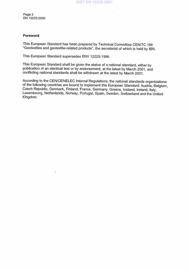 EN 12225:2000 is a standard published by the European Committee for Standardization (CEN). Its full title is "Geotextiles and geotextile-related products - Method for determining the microbiological resistance by a soil burial test". This standard covers: This standard specifies a method for the determination of the microbiological resistance of geotextiles and geotextile-related products by a soil burial test. It does not specify for which products or in which applications the soil burial test is required. Further reference should be made to CR ISO 13434.