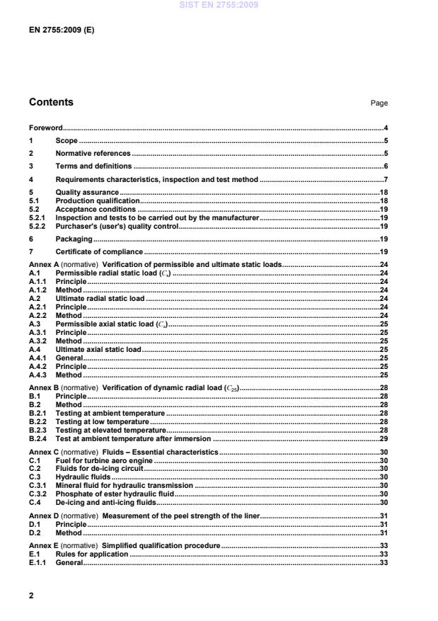 EN 2755:2009 is a standard published by the European Committee for Standardization (CEN). Its full title is "Aerospace series - Bearings, spherical plain in corrosion resisting steel with self-lubricating liner - Elevated load at ambient temperature - Technical specification". This standard covers: This standard specifies the required characteristics, inspection and test methods, qualification and acceptance conditions for spherical plain bearings in corrosion resisting steel, with self-lubricating liner, for elevated loads at ambient temperature intended for use in fixed or moving parts of the aircraft structure and control mechanisms. This standard applies whenever referenced.