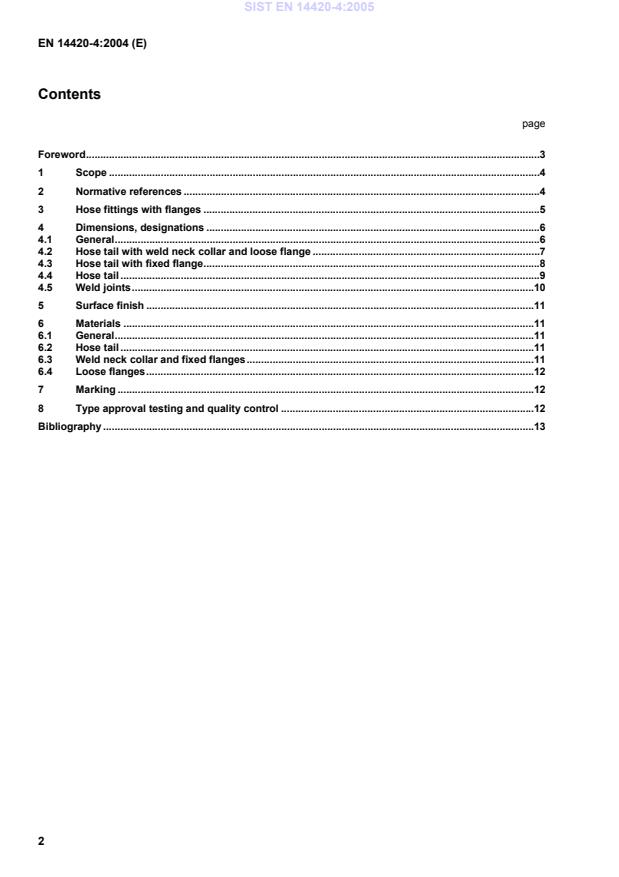 EN 14420 consists at the time of publication of the following parts: EN 14420-1, Hose fittings with clamp units — Part 1: Requirements, survey, designation and testing EN 14420-2, Hose fittings with clamp units — Part 2: Hose side parts of hose tail EN 14420-3, Hose fittings with clamp units — Part 3: Clamp units, bolted or pinned EN 14420-4, Hose fittings with clamp units — Part 4: Flange connections EN 14420-5, Hose fittings with clamp units — Part 5: Threaded connections EN 14420-6, Hose fittings with clamp units — Part 6: TW tank truck couplings EN 14420-7, Hose fittings with clamp units — Part 7: Cam locking couplings EN 14420-8, Hose fittings with clamp units — Part 8: Symmetrical half coupling (Guillemin system) According to the CEN/CENELEC Internal Regulations, the national standards organizations of the following countries are bound to implement this European Standard: Austria, Belgium, Cyprus, Czech Republic, Den-mark, Estonia, Finland, France, Germany, Greece, Hungary, Iceland, Ireland, Italy, Latvia, Lithuania, Luxem-bourg, Malta, Netherlands, Norway, Poland, Portugal, Slovakia, Slovenia, Spain, Sweden, Switzerland and United Kingdom SIST EN 14420-4:2005