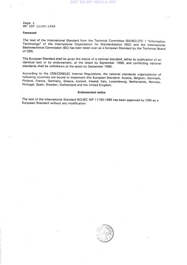 EN ISP 10613-4:1996 is classified under the following ICS (International Classification for Standards) categories: 35.100.05 - Multilayer applications. The ICS classification helps identify the subject area and facilitates finding related standards.