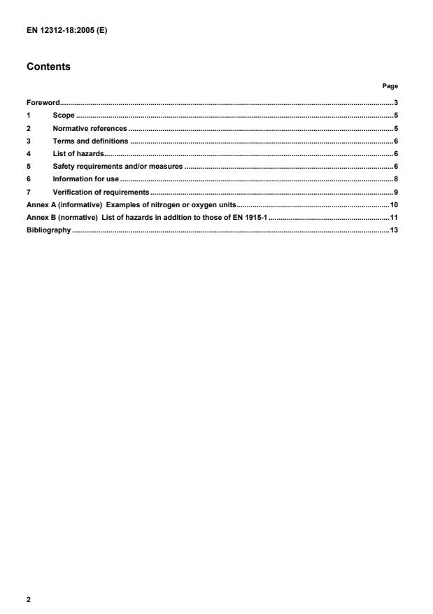 EN 12312-18:2005 is a standard published by the European Committee for Standardization (CEN). Its full title is "Aircraft ground support equipment - Specific requirements - Part 18: Nitrogen or Oxygen units". This standard covers: This document specifies the technical requirements to minimise the hazards listed in Clause 4 which can arise during the commissioning, operation and maintenance of nitrogen or oxygen units when carried out in accordance with the specifications given by the manufacturer or his authorised representative. It also takes into account some performance requirements recognised as essential by authorities, aircraft and ground support equipment (GSE), and by manufacturers as well as airlines and handling agencies. This document applies to: ¾ all types of mobile nitrogen units and oxygen units with transportable gas cylinders interchangeable for filling purposes; ¾ equipment to be carried with other GSE or vehicles, e.g. skid mounted units, intended for the manual refill of gaseous nitrogen or oxygen on aircraft (Examples see Annex A). NOTE Generally oxygen units are used under aircraft maintenance conditions, not under commercial servicing conditions. This document does not establish requirements for noise and vibration. Noise and vibration are dealt with respectively in EN 1915 4 and EN 1915 3. This document does not deal with hazards regarding standard automotive chassis and other vehicles on the apron. This Part of EN 12312 is not applicable to nitrogen or oxygen units which are manufactured before the date of publication of this document by CEN.