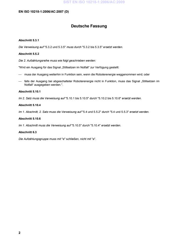 EN ISO 10218-1:2006/AC:2007 is a corrigendum published by the European Committee for Standardization (CEN). Its full title is "Robots for industrial environments - Safety requirements - Part 1: Robot (ISO 10218-1:2006)". This standard covers: DIN - Translation mistakes to 5.3.1, 5.5.2, 5.10.1, 5.10.4, 5.10.6 and 6.3
