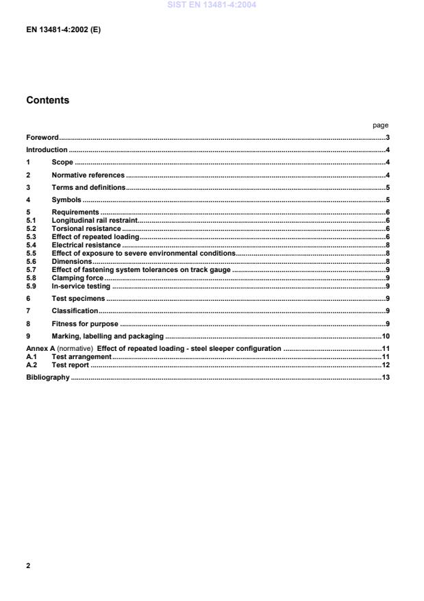 Effect of repeated loading - steel sleeper configuration.11A.1Test arrangement.11A.2Test report.12Bibliography.13SIST EN 13481-4:2004