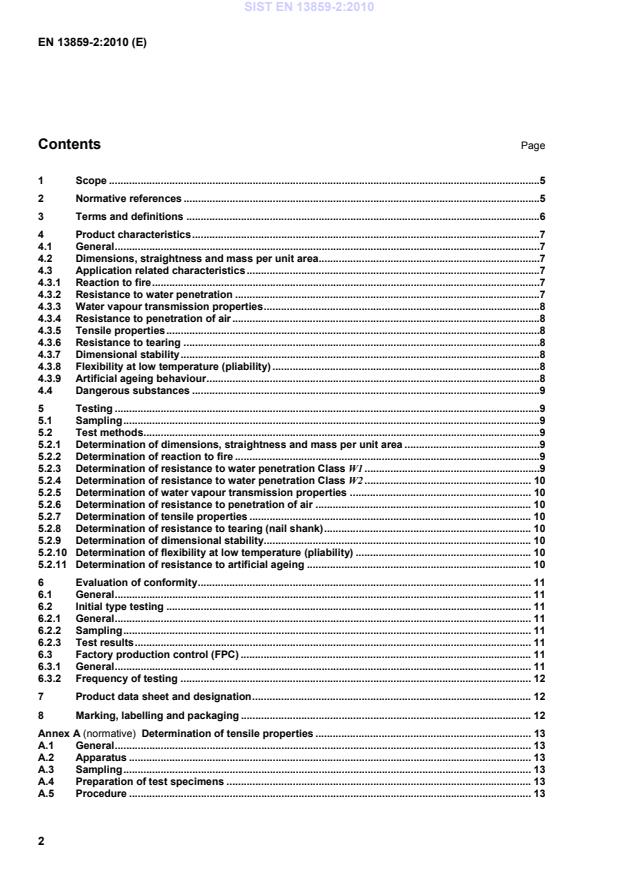 Determination of tensile properties . 13A.1 General . 13A.2 Apparatus . 13A.3 Sampling . 13A.4 Preparation of test specimens . 13A.5 Procedure . 13SIST EN 13859-2:2010
