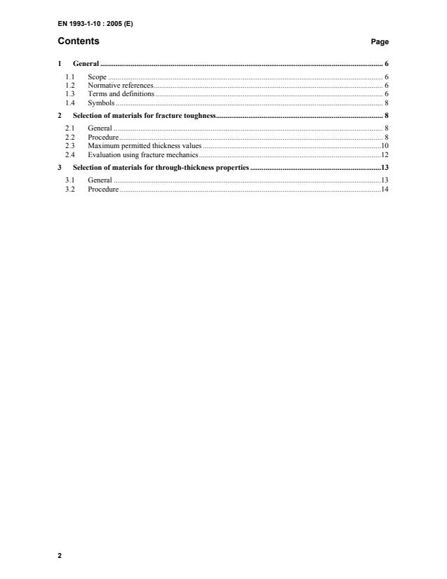 1 General.6 1.1 Scope.6 1.2 Normative references.6 1.3 Terms and definitions.6 1.4 Symbols.8 2 Selection of materials for fracture toughness.8 2.1 General.8 2.2 Procedure.8 2.3 Maximum permitted thickness values.10 2.4 Evaluation using fracture mechanics.12 3 Selection of materials for through-thickness properties.13 3.1 General.13 3.2 Procedure.14