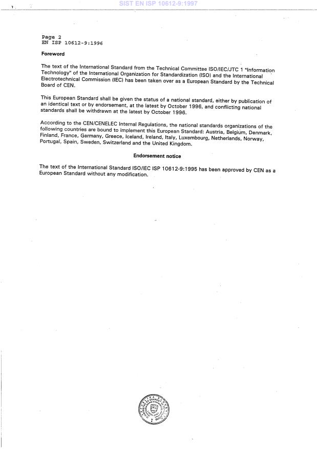 EN ISP 10612-9:1996 is classified under the following ICS (International Classification for Standards) categories: 35.100.05 - Multilayer applications. The ICS classification helps identify the subject area and facilitates finding related standards.