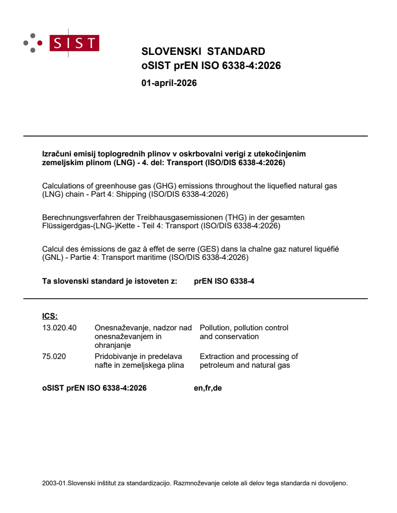 zemeljskim plinom (LNG) - 4. del: Transport (ISO/DIS 6338-4:2026)