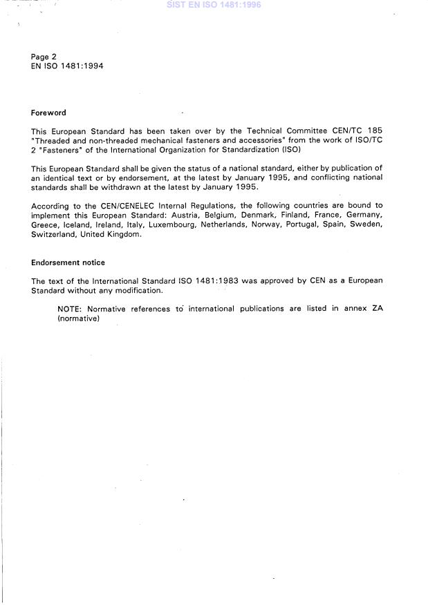 EN ISO 1481:1994 is classified under the following ICS (International Classification for Standards) categories: 21.060.10 - Bolts, screws, studs. The ICS classification helps identify the subject area and facilitates finding related standards.