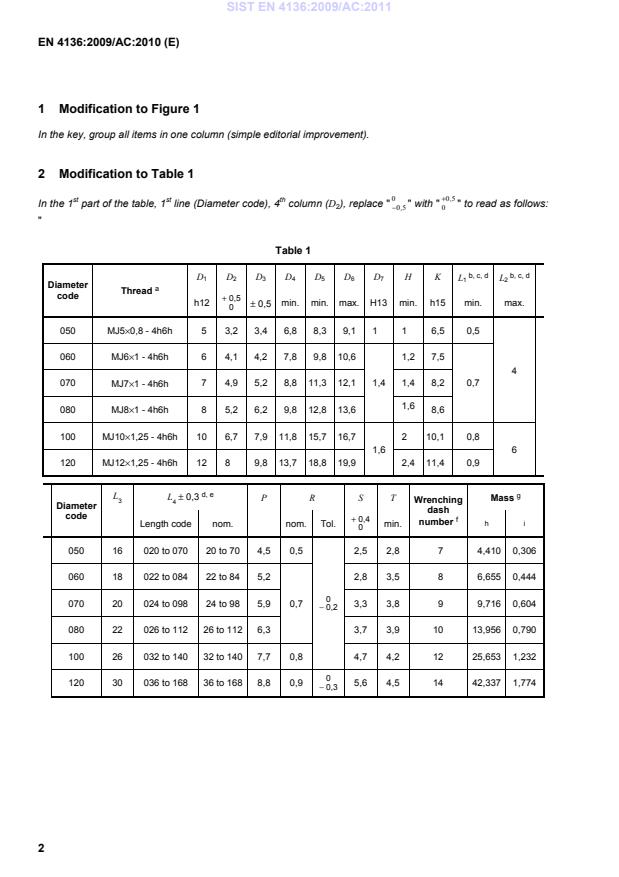 EN 4136:2009/AC:2010 is a corrigendum published by the European Committee for Standardization (CEN). Its full title is "Aerospace series - Bolts, normal bi-hexagonal head, coarse tolerance normal shank, long thread, in alloy steel, cadmium plated - Classification: 1 100 MPa (at ambient temperature) / 235 °C". This standard covers: This standard specifies the characteristics of bolts, normal bi-hexagonal head, coarse tolerance normal shank, long thread, in alloy steel, cadmium plated. Classification: 1 100 MPa ) / 235 °C )