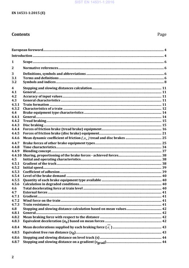 EN 14531-1:2015 is a standard published by the European Committee for Standardization (CEN). Its full title is "Railway applications - Methods for calculation of stopping and slowing distances and immobilization braking - Part 1: General algorithms utilizing mean value calculation for train sets or single vehicles". This standard covers: This European Standard describes general algorithms for the brake performance calculations to be used for all types of train sets, units or single vehicles, including high speed, locomotive and passenger coaches, conventional vehicles and wagons. This European Standard does not specify the performance requirements. It enables the estimation and/or comparison by calculation of the various aspects of the performance: stopping or slowing distances, dissipated energy, power, force calculations and immobilization braking. If it is required to validate, verify or assess braking performance it is recommended that a more detailed calculation is performed in accordance with FprEN 14531-2, i.e. a step by step calculation. This European Standard contains generic examples of the calculation of brake forces for individual brake equipment types and calculation of stopping distance and immobilization braking relevant to a train (see Annexes C and D).