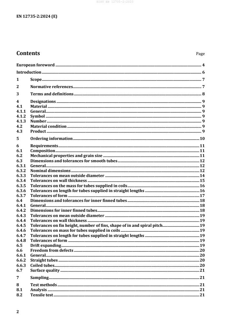Keywords: EN 12735-2:2024, copper tubes, seamless round tubes, inner-finned tubes, refrigeration, air conditioning, heat exchangers, test methods, dimensional tolerances, PED compliance.