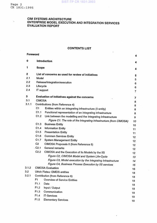 CR 1831:1995 is a technical report published by the European Committee for Standardization (CEN). Its full title is "CIM Systems Architecture - Enterprise model execution and integration services - Evaluation report". This standard covers: This Evaluation Report reviews contributions received from projects in answer to a call for input on a Framework for Integrating Infrastructure. It should be read in conjunction with the Statement of Requirements which introduces the concepts used in the evaluation process. In accordance with the mandate reproduced as Annex A, this report is concerned with: - The "collection and evaluation of existing separate initiatives on Frameworks for ...Enterprise Model Execution and Integration Services" for the execution of enterprise models specific to CIM and model components. - "As a requirement, such initiatives shall be in line with the ENVs developed through Mandate BC-62 and with ENV 40 003". This work is a preliminary step towards the drafting of a "European Standard (ENV in the first phase) defining the requirements [for a] Framework for the Enterprise Model Execution and Integration Services within the areas of CIM Systems Architecture" (with reference to work items M.0.1.4.1 and M.0.1.4.2 of CEN/TC 310 N33 Issue A, August 1993. The enterprise model(s) have to support integration of physical components, integration of applications and information, and, at the highest level, integration of business requirements. The use of such enterprise models requires supporting services, EMEIS. The overall requirement for the EMEIS is: - To support the execution of a model or model components or the day to day management of the enterprise, and - To support the embedding of these model componenents into and within the supporting execution environment. Particular requirements for the EMEIS are currently foreseen as the ability to support: - On-going changes in the modus operandi of the enterprise, - Life-cycle concerns for models and model components, - Structures and objects composed of data of different kinds and from different sources, - Co-ordination of the structures and objects.