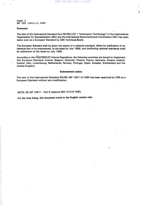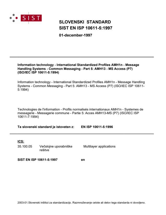 EN ISP 10611-5:1996 is classified under the following ICS (International Classification for Standards) categories: 35.100.05 - Multilayer applications. The ICS classification helps identify the subject area and facilitates finding related standards.