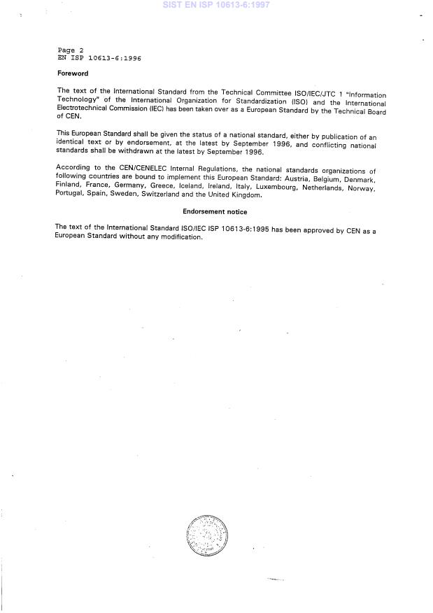 EN ISP 10613-6:1996 is classified under the following ICS (International Classification for Standards) categories: 35.100.05 - Multilayer applications. The ICS classification helps identify the subject area and facilitates finding related standards.