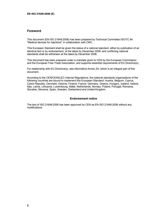 This document (EN ISO 21649:2006) has been prepared by Technical Committee ISO/TC 84