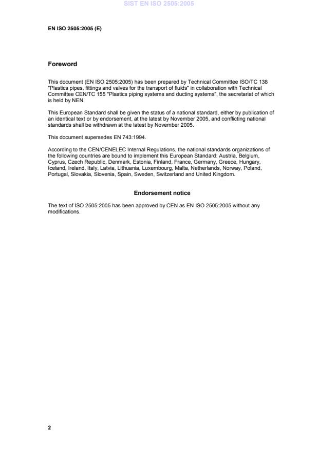 ISO 2505 was prepared by Technical Committee ISO/TC 138, Plastics pipes, fittings and valves for the