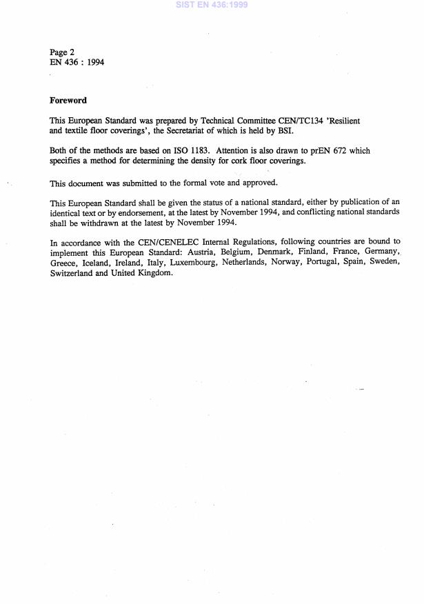 EN 436:1994 is a standard published by the European Committee for Standardization (CEN). Its full title is "Resilient floor coverings - Determination of density". This standard covers: This European Standard specifies two methods for determining the density of homogeneous resilient floorcoverings and solid layers of other resilient floorcoverings.