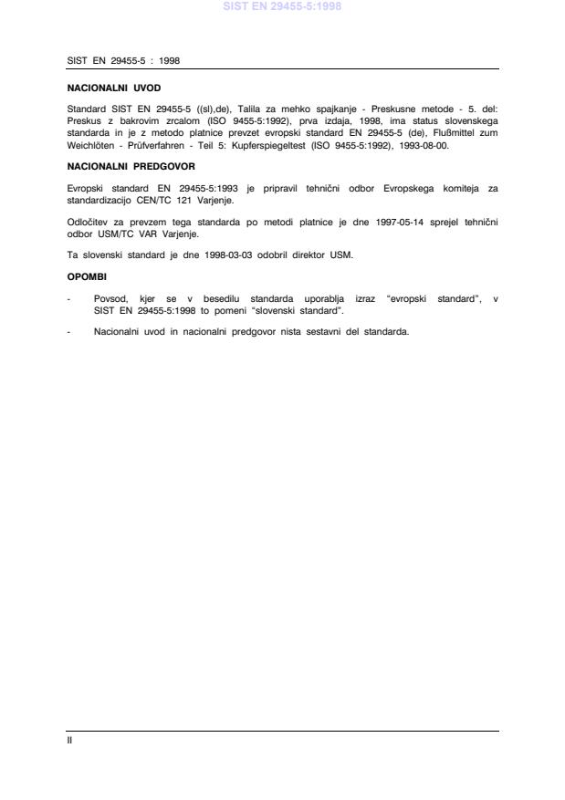 Talila za mehko spajkanje - Preskusne metode - 5. del: Preskus z bakrovim zrcalom (ISO 9455-5:1992)