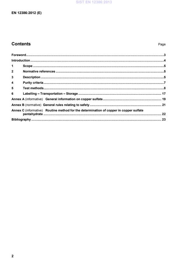 Routine method for the determination of copper in copper sulfate pentahydrate . 22Bibliography . 23 SIST EN 12386:2013
