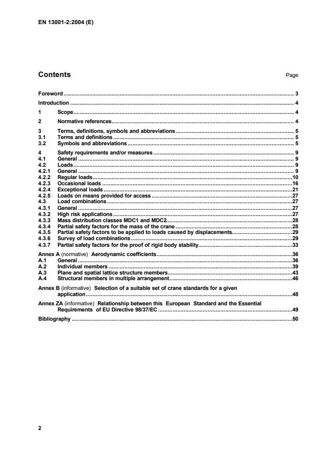 Diese Europäische Norm ist zusammen mit Teil 1 und Teil 3 anzuwenden und spezifiziert allgemeine Bedingungen, Anforderungen und Methoden zur Vermeidung von Gefahren bei Kranen durch die Konstruktion und theoretische Überprüfung. Teil 3 befindet sich in der Vorentwurfsphase; die Verwendung der Teile 1 und 2 setzt nicht die Veröffentlichung von Teil 3 voraus.