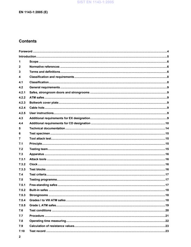 4.3 Additional requirements for EX designation When tested in accordance with Clause 9, safes of resistance grades II to X designated 'EX' shall achieve the minimum post-detonation resistance values given in Table 1. EX designation is not applicable to safes of resistance grade 0 to I. When tested in accordance with Clause 9, ATM safes of resistance grades II to VIII designated 'EX' shall achieve the minimum post-detonation resistance values given in Table 2. EX designation is not applicable to ATM safes of resistance grades L and I. When tested in accordance with Clause 9, strongroom doors and strongrooms (with or without doors) of resistance grades II to XIII designated 'EX' shall achieve the minimum post-detonation resistance values given in Table 3. EX designation is not applicable to strongroom doors and strongrooms of resistance grades 0 and I. SIST EN 1143-1:2005