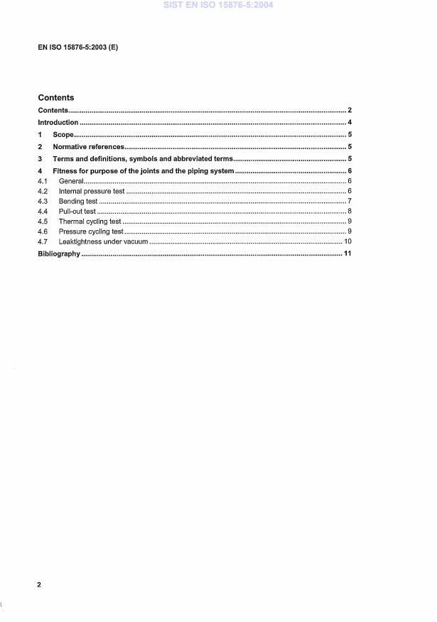 EN ISO 15876-5:2003 is a standard published by the European Committee for Standardization (CEN). Its full title is "Plastics piping systems for hot and cold water installations - Polybutylene (PB) - Part 5: Fitness for purpose of the system (ISO 15876-5:2003)". This standard covers: ISO 15876-5:2003 specifies the characteristics of the fitness for purpose of polybutylene (PB) piping systems intended to be used for hot and cold water installations, within buildings, for the conveyance of water which may or may not be intended for human consumption (domestic systems) and for heating systems, under design pressures and temperatures appropriate to the class of application. It covers a range of service conditions (classes of application) and design pressure classes. It does not apply if the values of the design temperature, maximum design temperature and malfunction temperature are in excess of those given in ISO 15876-1. It also specifies the test parameters for the test methods referred to in the standard. In conjunction with the other parts of ISO 15876, it is applicable to PB pipes, fittings and their joints, including joints with components of other plastics and non-plastics materials intended to be used for hot and cold water installations.