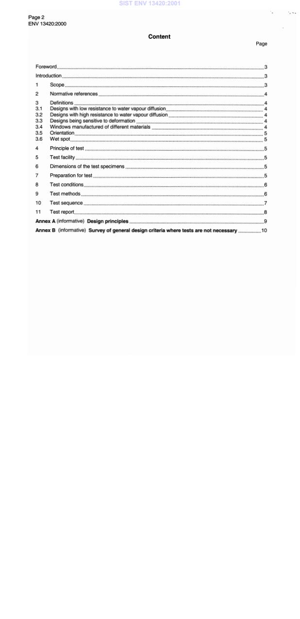 Diese Europäische Vornorm legt die Prüfverfahren fest zur Beurteilung: der Risiken von Zerstörung von Fenstern aus verschiedenen Werkstoffen durch erhöhte Feuchtigkeitsanreicherung infolge Kondensation oder Diffusion; des Einflusses von Verformung auf die grundsätzlichen Anforderungen von Fenstern aus verschiedenen Werkstoffen unter Belastung durch unterschiedliche Klimaten zwischen den Außen- und Innenflächen. Drei Prüfverfahren sind zu unterscheiden. Diese berücksichtigen verschiedene Belastungsfälle.