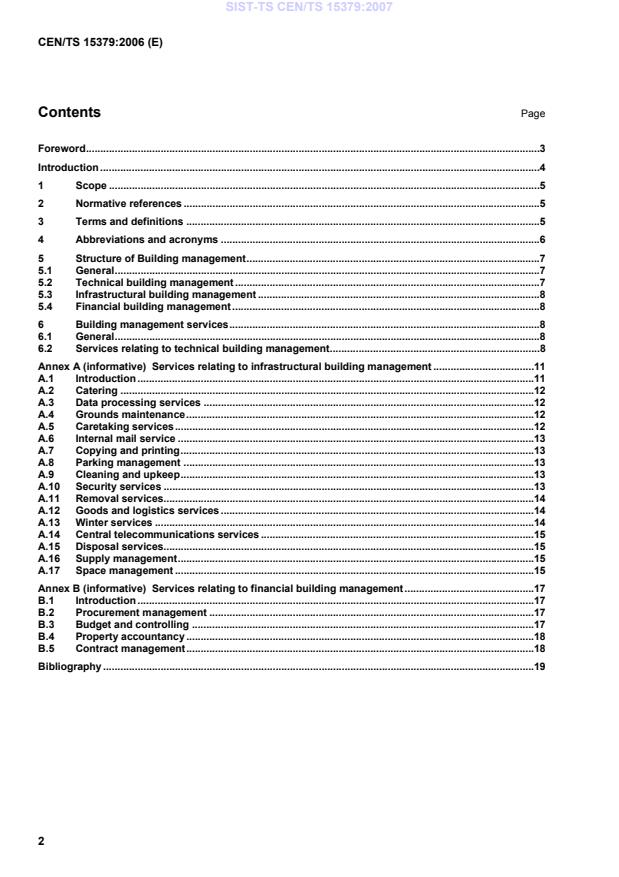 CEN/TS 15379:2006 is a technical specification published by the European Committee for Standardization (CEN). Its full title is "Building management - Terminology and scope of services". This standard covers: The document provides a structure of Building Management (BM) and its Building Services and gives terms and definitions in the field of Building Management for general understanding. The document does not purport to describe Building Management Systems.
