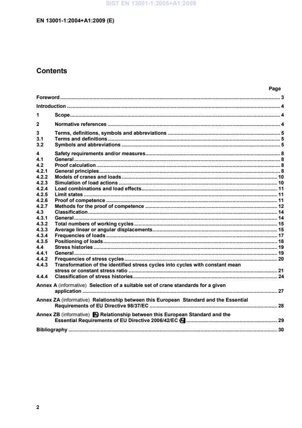 !!!!Relationship between this European Standard and the Essential Requirements of EU Directive 2006/42/EC"""" . 29Bibliography . 30 SIST EN 13001-1:2005+A1:2009