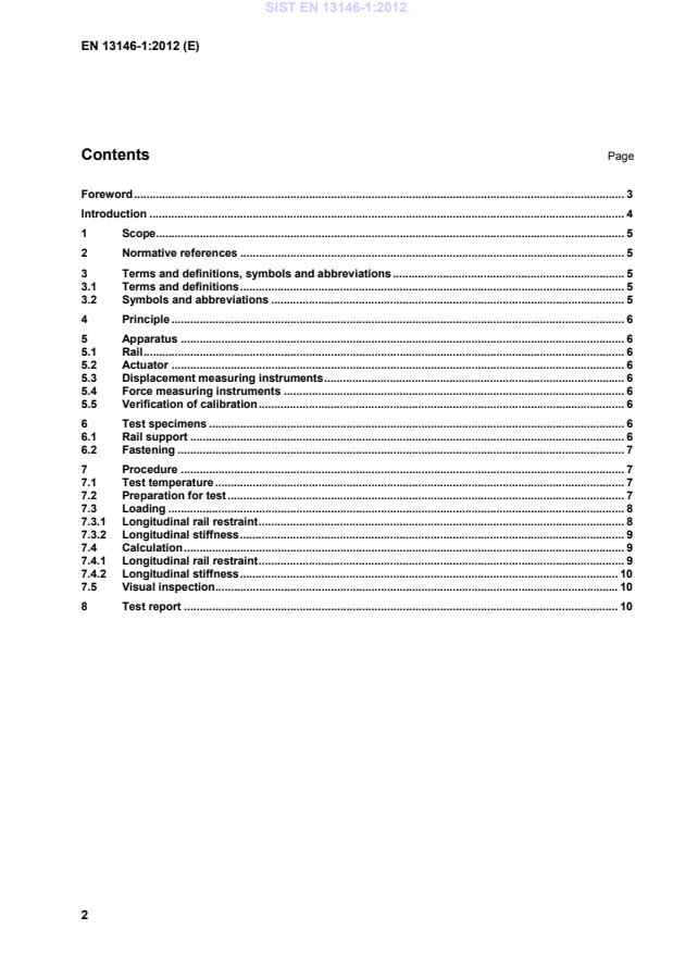 Ta evropski standard določa laboratorijski preskusni postopek za ugotavljanje: a) največje vzdolžne sile, ki ji je lahko izpostavljena tirnica, pritrjena na prag, nosilno ogrodje ali tirni element s pritrdilnim sestavom za tirnice, brez neelastičnega premika tirnice, ali b) vzdolžne togosti pri določenem vzdolžnem premiku primerka vgrajene tirnice z adhezivnim pritrdilnim sistemom.
