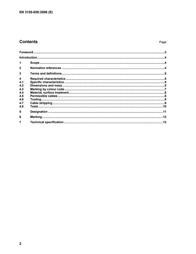 This standard specifies the required characteristics and tests applicable to male electrical contacts 026, type A, crimp, class R, used in elements of connection according to EN 3155-002. It shall be used together with EN 3155-001. The associated female contacts are defined in EN 3155-027.