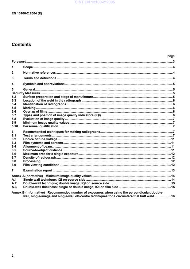 EN 13100-2:2004 is a standard published by the European Committee for Standardization (CEN). Its full title is "Non-destructive testing of welded joints in thermoplastics semi-finished products - Part 2: X-ray radiographic testing". This standard covers: This document specifies fundamental radiographic techniques which enable repeatable results to be obtained economically. This document applies to the X-ray radiographic examination of heated tool, electrofusion, extrusion and hot gas joints in plastics materials. It applies to joints in single wall pipes and plates with a range of thicknesses from 5 mm to 100 mm. It only applies to pipes containing air or other gases at the time of X-ray testing. This document does not specify acceptance levels of the indications.