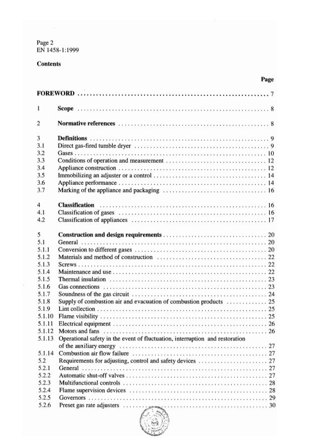 Dieser Teil 1 der Europäischen Norm prEN 1458 legt die Anforderungen und Prüfverfahren für den Bau, die Sicherheit und das Kennzeichnen von direkt gasbeheizten Haushalts-Trommeltrocknern der Typen B22D und B23D, deren Nenn-Wärmebelastung 6 kW nicht überschreibt, im folgenden "Geräte" genannt, fest.