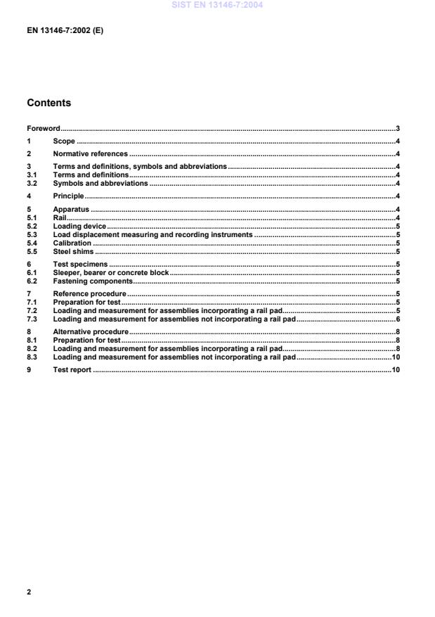 EN 13146-7:2002 is a standard published by the European Committee for Standardization (CEN). Its full title is "Railway applications - Track - Test methods for fastening systems - Part 7: Determination of clamping force". This standard covers: This part of EN 13146 specifies a laboratory test procedure for measuring the clamping force exerted by the fastening system on the foot of a rail. It is applicable to systems with and without baseplates on all types of sleepers. Performance requirements based on this test method are included in EN 13481.