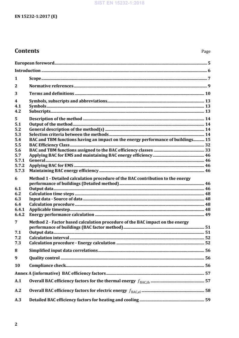 BAC efficiency factors . 57 A.1 Overall BAC efficiency factors for the thermal energy BAC,thf . 57 A.2 Overall BAC efficiency factors for electric energy BAC,elf. 58 A.3 Detailed BAC efficiency factors for heating and cooling . 59 SIST EN 15232-1:2018