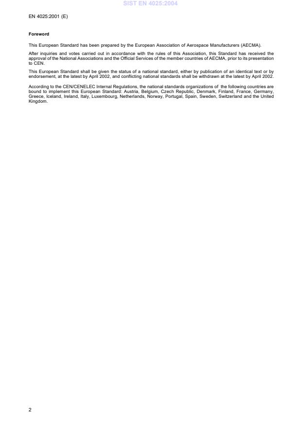 Ta slovenski standard je istoveten z: EN 4025:2001