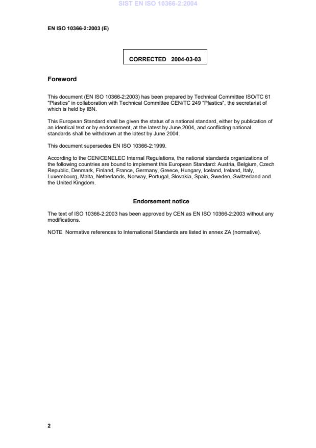 ISO 10366-2 was prepared by Technical Committee ISO/TC 61, Plastics, Subcommittee SC 9, Thermoplastic